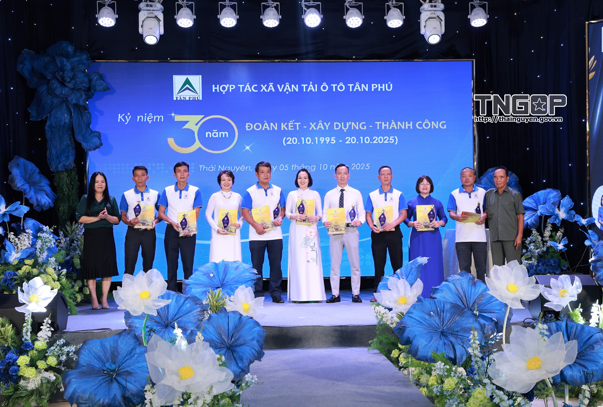 Ngày 5/10/2025, Hợp tác xã (HTX) Vận tải Ô tô Tân Phú long trọng tổ chức lễ kỷ niệm 30 năm thành lập (20/10/1995 – 20/10/2025) với chủ đề đầy khí thế: "Đoàn kết – Xây dựng – Thành công". Tham dự lễ kỷ niệm có lãnh đạo Liên minh HTX tỉnh Thái Nguyên, đại diện các sở, ngành, địa phương, đối tác chiến lược cùng toàn thể cán bộ, xã viên và người lao động của HTX qua các thế hệ.